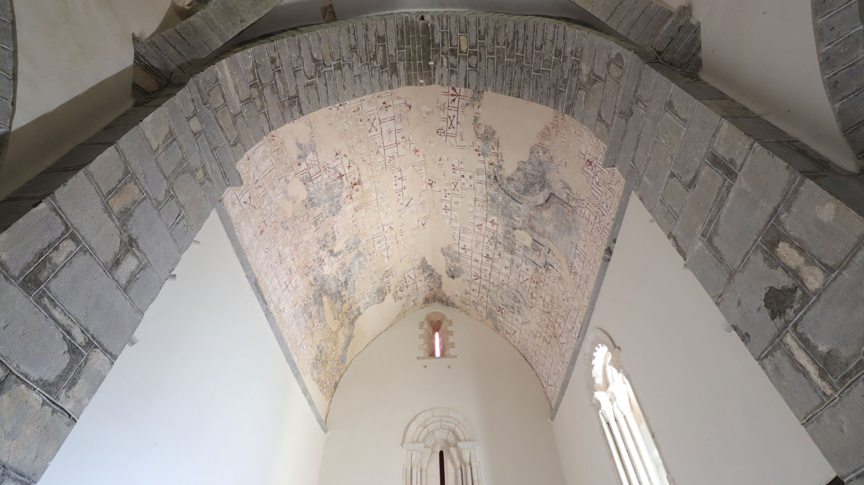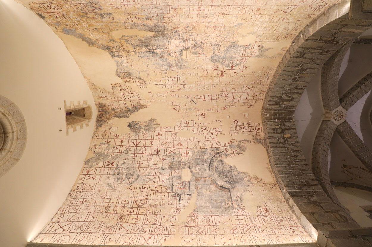 En el año 2025 se inició la restauración de las pinturas del tramo de la bóveda de crucería. Allí apareció de nuevo un despiece de sillares, pero que en esta ocasión se decoraba con estrellas. También se pudo constatar un cambio en la técnica del mortero empleado, ya que presentaba grandes cantidades de fibras semejantes a la estopa. Esto hace sospechar que la decoración de este tramo fue ligeramente posterior a la de la bóveda del presbiterio, aunque formando parte de un mismo proyecto decorativo.