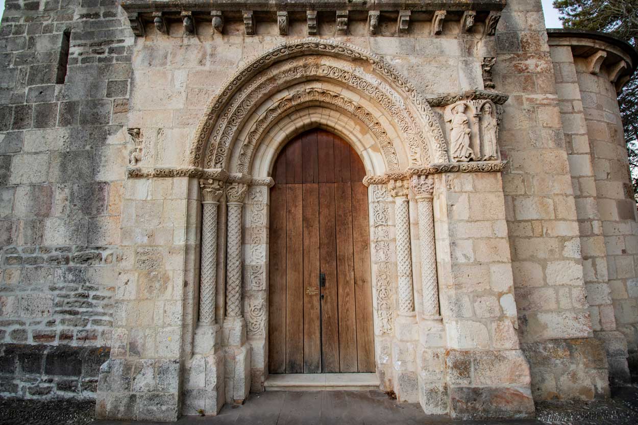 A pesar de las intensas restauraciones que sufrió el templo durante todo el siglo XX, todavía conserva la mayor parte de elementos medievales. Por ejemplo, la portada oeste, actual acceso a la iglesia, fue trasladada y montada de nuevo a seis metros de su lugar original para ampliar el espacio de la iglesia durante la restauración de 1927, pero los materiales que la componen y el diseño se mantuvieron en su mayor parte. Podemos observar la sobriedad que protagoniza esta portada y que contrasta con la profusión decorativa de la portada sur, denominada Puerta Speciosa.